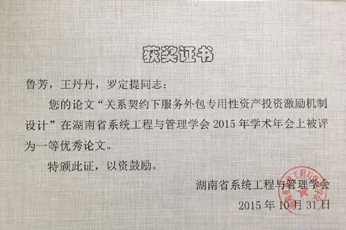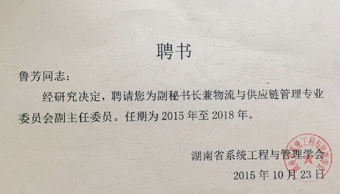 会上,鲁芳博士被增选为湖南省系统工程与管理学会副秘书长兼物流与供应链管理专业委员会副主任委员。
