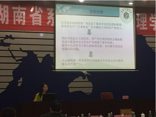 我所副教授鲁芳博士在第五位做报告,主题为“关系契约下服务外包专用性资产投资激励机制设计”。