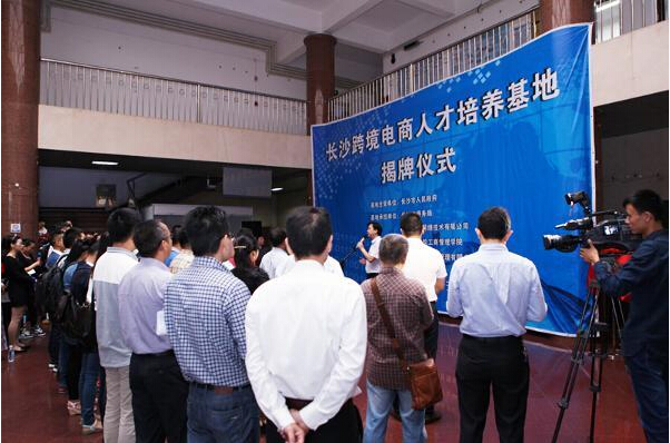 9月25日上午,“长沙跨境电商人才培养基地”揭牌仪式在湖南商学院实验楼举行。该校校领导,长沙市人民政府副市长廖健、长沙市人民政府副秘书长王体泽,阿里巴巴湖南区域公司总经理罗海文出席活动。市直相关部门及多个国家级市县园区、该校工商管理学院、人才培养基地各合作院校等负责人和30余家跨境电商企业代表参加了挂牌仪式。