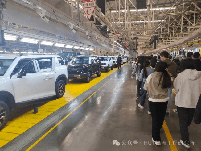 在总装车间,全自动化生产线与柔性化装配技术成为亮点。总装车间是整车组装的“大舞台”,各种零部件在流水线上有序组装,最终一辆辆崭新的汽车缓缓驶下生产线。同学们认真聆听讲解,对汽车制造的生产物流和先进技术有了全面深入的认识。