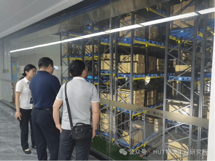 此次考察学习活动中,师生一行重点参观了“德荣智仓”,实地探访了国内首创的“一仓三库”模式。首先参观的是常温多层厢式立库,该仓库基于3D“货到人”模式,入库、存储等流程高效流转,实现了货物配送中心一次落地,大幅降低了成本、提高了效率,充分展现了智慧物流的高效运作。在常温多层厢式立库旁边的是冷链多层厢式立库,与传统模式相比,它不仅提升了自动化程度,还改善了人员作业环境,减少了库内能耗,很好地践行了绿色仓储理念。自动化高位托盘立库同样令人印象深刻,24米高的立体空间,借助密集存储系统,实现了“货到人”拣选,将订单响应时间从“天”级缩短至30-60分钟,这种效能的飞跃充分彰显了科技赋能的强大实力。