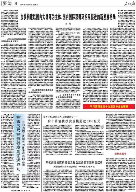 11月25日,国务院副总理刘鹤在人民日报撰文——加快构建以国内大循环为主体、国内国际双循环相互促进的新发展格局(学习贯彻党的十九届五中全会精神)。文中明确提到流通是畅通经济循环的重要基础。要构建现代物流体系,完善综合运输大通道、综合交通枢纽和物流网络。