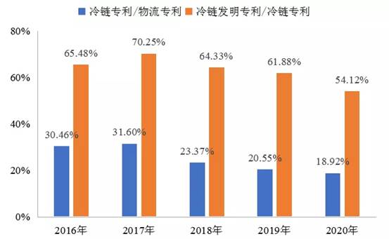 相较于美国、日本等发达国家而言,中国冷链物流产业起步晚,冷链企业普遍“小而散、缺专人、缺资金”,冷链行业市场集中度不高。一是我国冷链市场集中度仅为美国的1/4。“中国冷链物流百强企业”数据显示,2019年冷链物流百强企业的冷链业务营收合计达549.76亿元,同比增长38.05%,占总行业市场规模约16.21%,同比2018年增加了2.42%,而美国前五强企业占63%的市场份额,可见我国冷链市场集中度依然不高。二是冷链企业中大型企业较少,多为中小型企业,市场竞争力较弱。企业工商注册数据显示,我国现存续的冷链企业中中小型企业数量占比高达99.28%(图8),冷链物流行业仍面临散、小、杂的特点。三是冷链专业人才供需缺口巨大,创新研发乏力。目前全国开设“冷链物流技术与管理专业”的院校仅有10所,大数据分析显示,2019—2020年,以上10所高校冷链毕业生人数与前十强冷链物流企业冷链岗位招聘量的供需比为1:4,另据中物联冷链委调查显示,68.97%的企业反映难以招聘到合适的冷链物流人才,具备全链设计能力的专业人才更是严重匮乏,冷链相关领域的创新活力呈现回落趋势(图9)。
